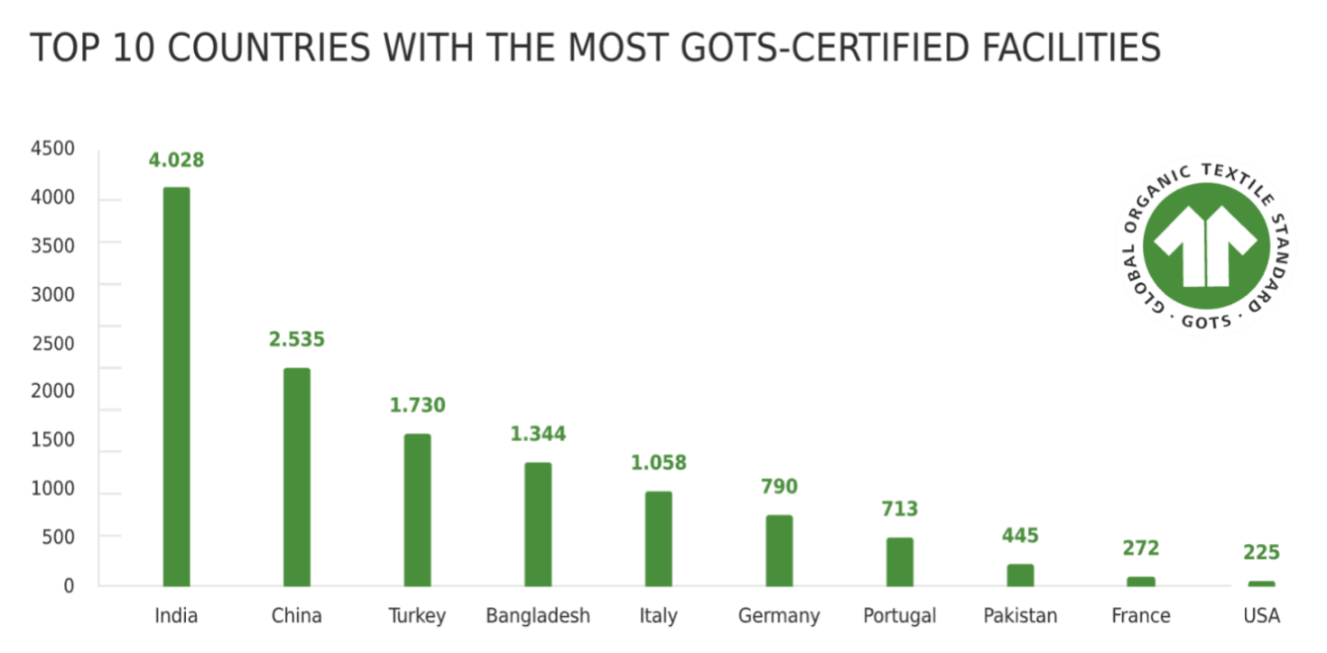 GOTS认证场所数量最多的10个国家