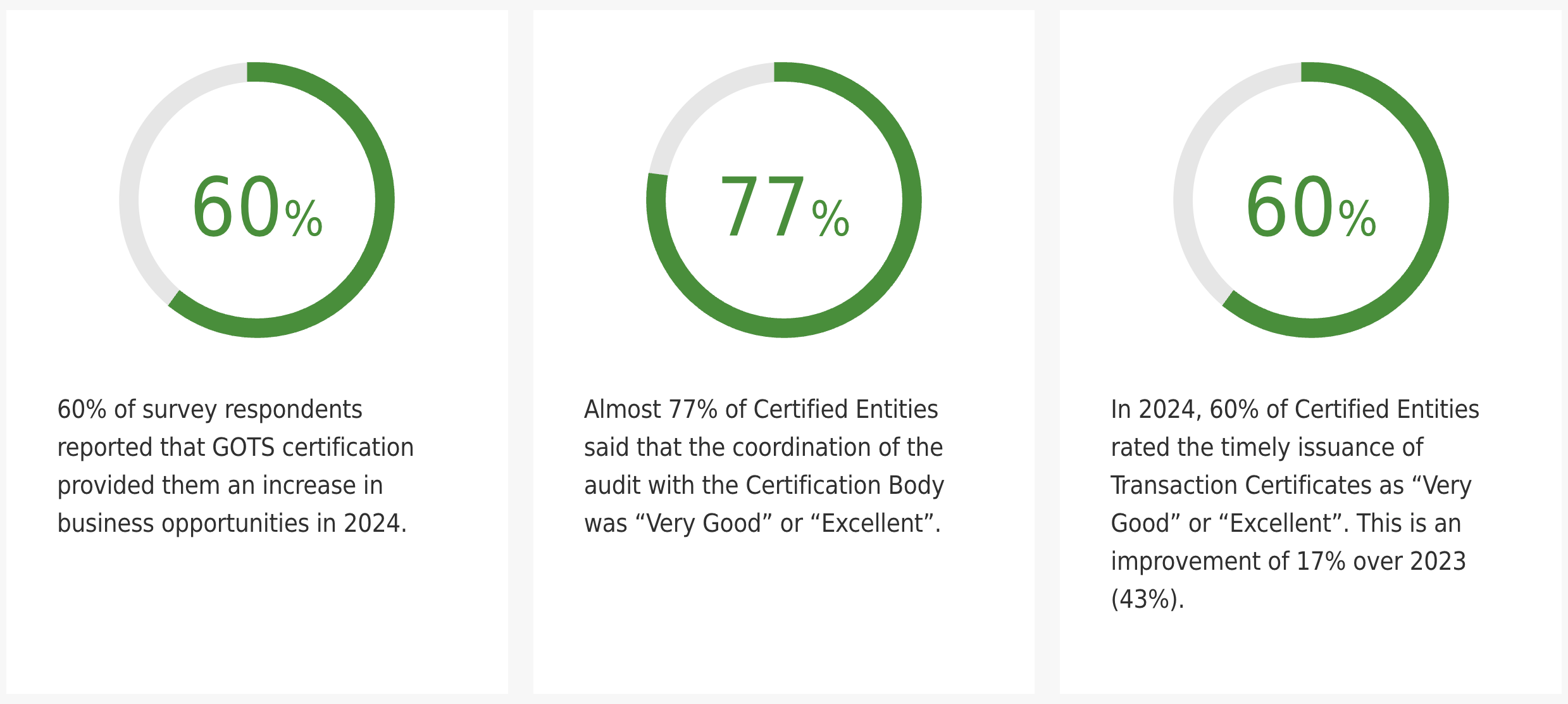 - 60%的调查受访者表示,GOTS认证在2024年为他们提供了更多的商机。