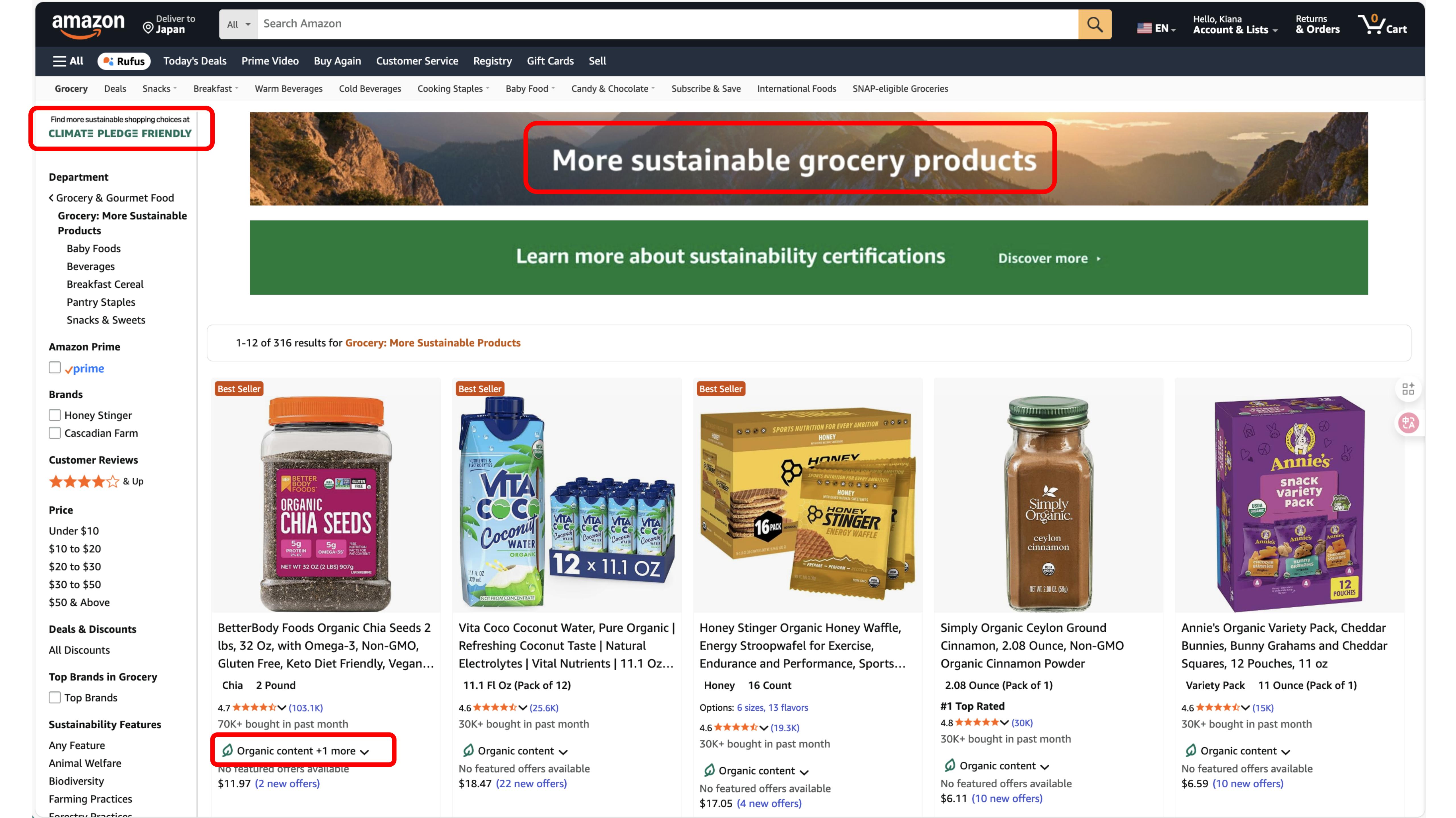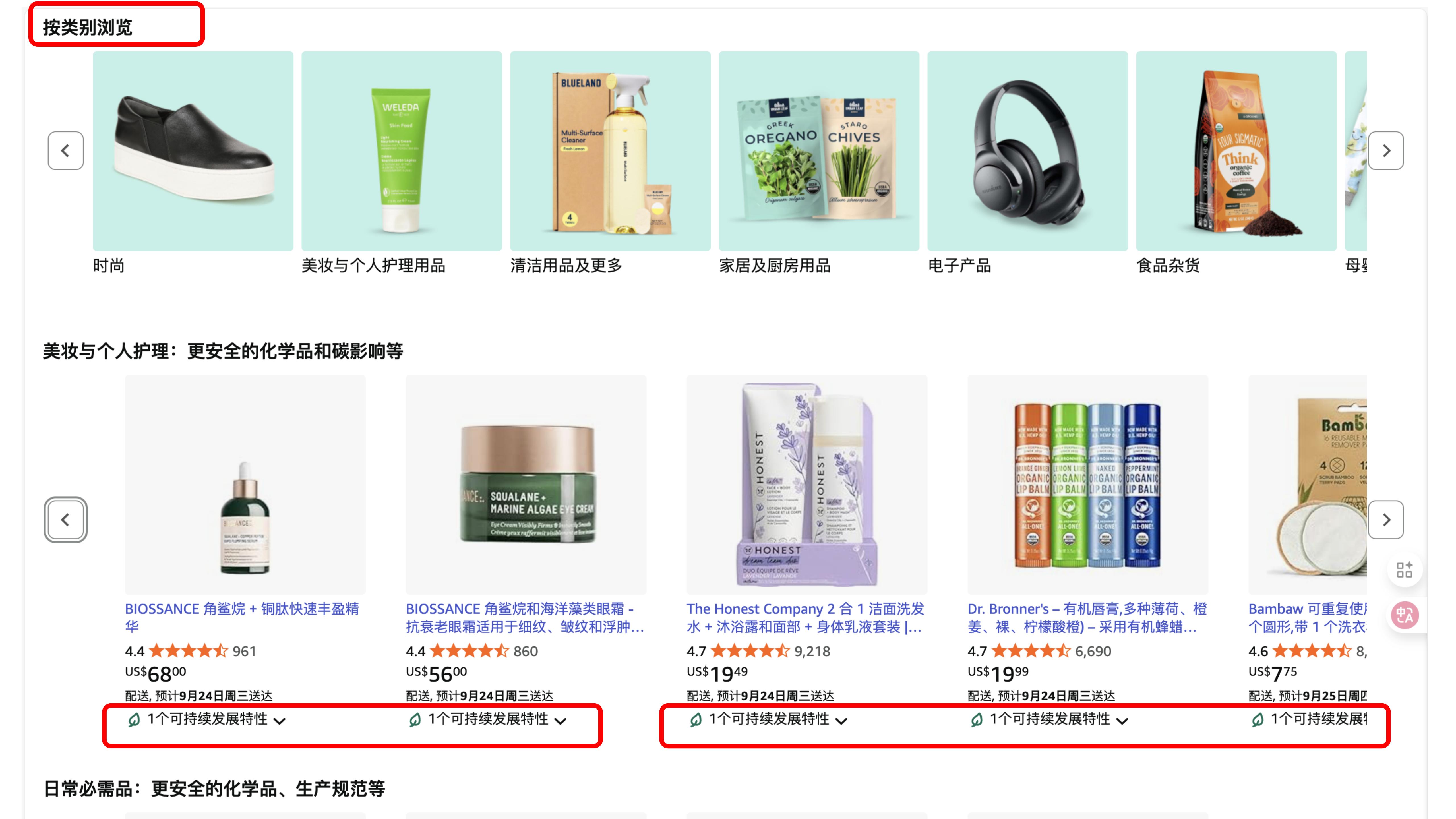 在亚马逊搜索结果、推荐位置、商品详情页等页面获得更高曝光率,因为标识+用户过滤功能使产品更容易被注重环保的消费者找到。